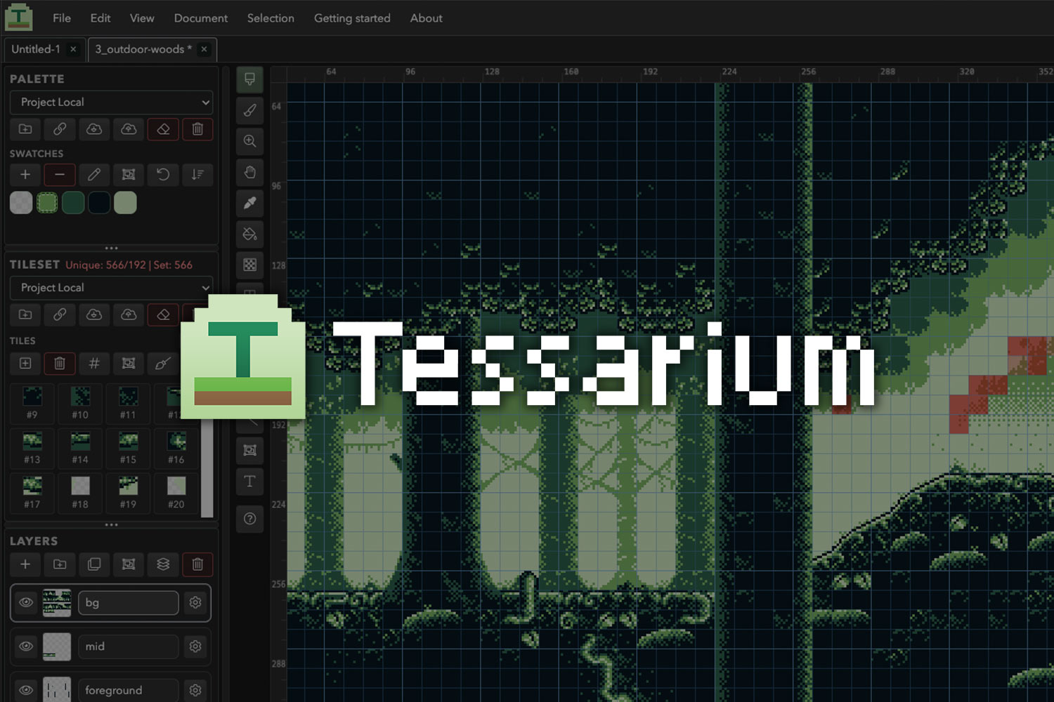 Tessarium is a tile-first retro pixel art level editor, built for Game Boy DMG/Color development and smoother GB Studio workflows.